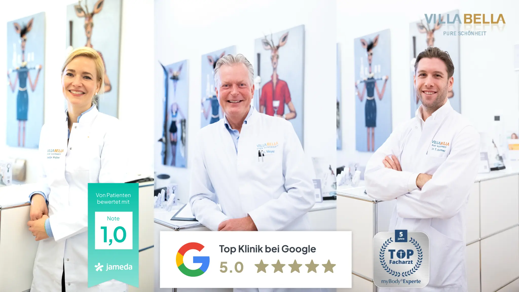 "In der "Villa Bella", wird man als Mensch und Patient sehr ernst genommen. Man spürt sofort die Wertschätzung und Herzlichkeit des ganzen Teams. Herr Dr. Meyer nimmt sich viel Zeit und berät äußerst fachkompetent, immer mit echtem Interesse und Freude an seinem Beruf und seiner Tätigkeit, Einfühlungsvermögen und einer Prise Humor. Die Patienten können ein unmittelbareres Vertrauen entwickeln. Das Gesamtpaket all dieser positiven Eigenschaften, zu dem man noch einige hinzufügen könnte führen dann auch zu maximalen Ergebnissen und sich in der "VillaBella" sehr wohlfühlen zu können. Sehr zu empfehlen"